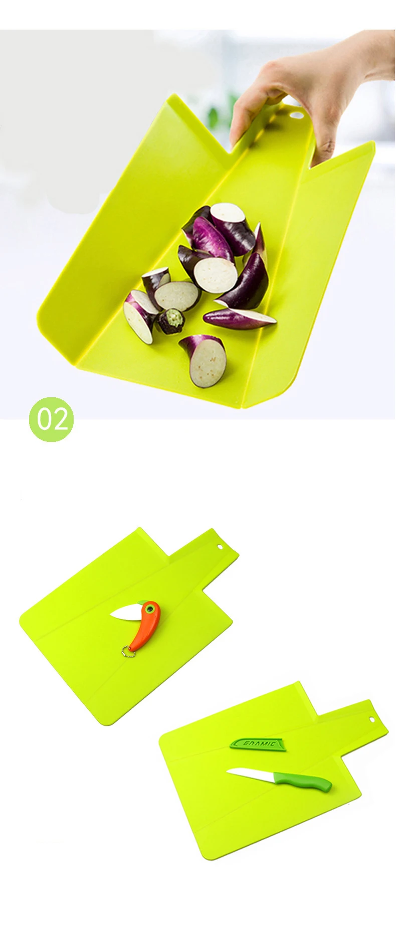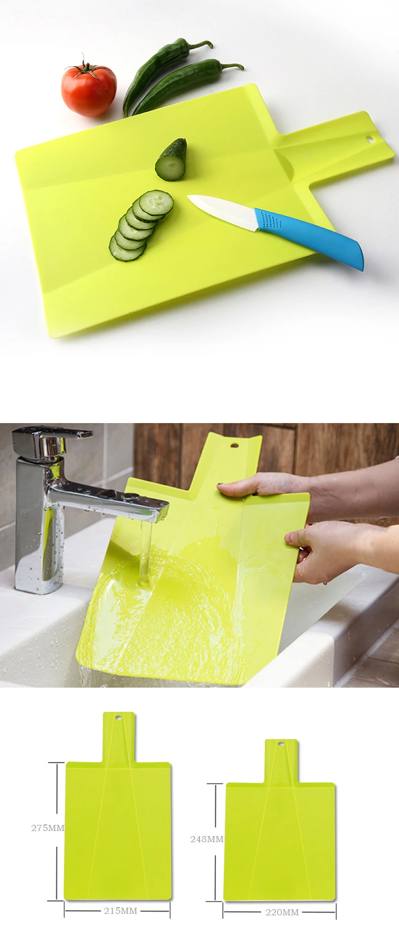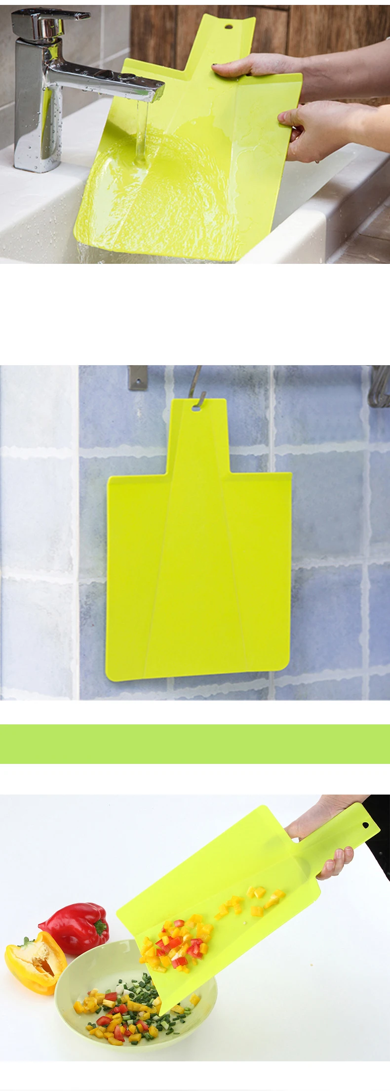 Foldable kitchen cutting board, plastic chopping board, foldable cutting mat, chopping block, kitchen accessories for cooking.